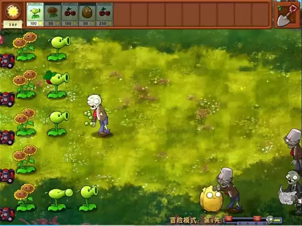 玩家扮演儒尸攻破桔物防线,击杀植物获得阳光。