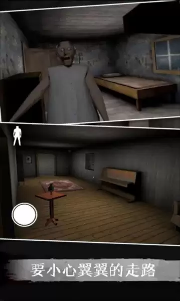 1、点击屏幕左边可以控制人物移动方向,探索房间内的柜子和其他隐藏物品,寻找有用的道具和线索;这些道具可能能够帮助你逃脱老奶奶的追捕。